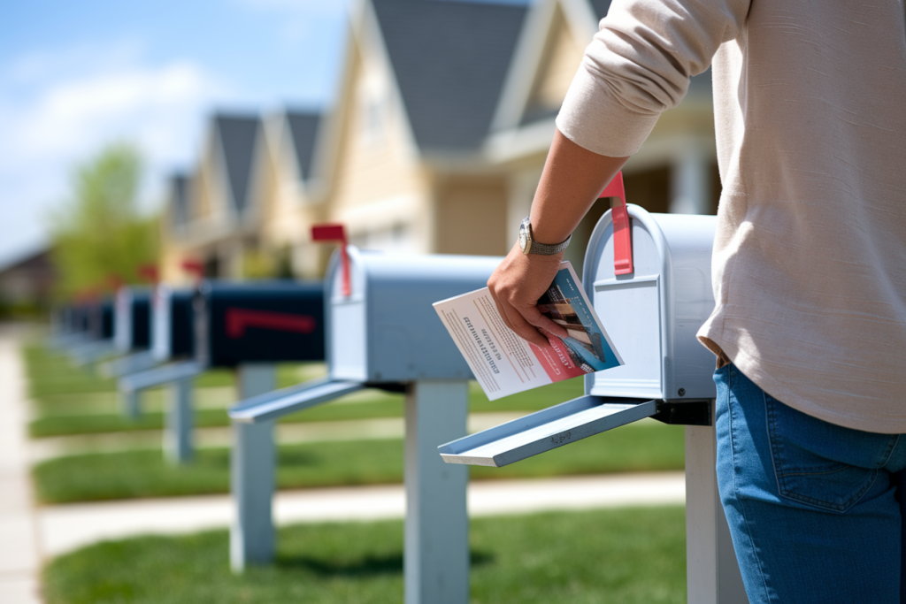 La distribution en boîtes aux lettres reste la plus ciblée géographiquement. Vous maîtrisez parfaitement votre zone et touchez les habitants à leur domicile. Seule contrainte : respecter les Stop Pub et éviter les résidences avec gardien qui peuvent interdire l’accès.